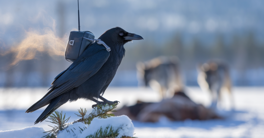 Le suivi simultané d’oiseaux et de loups, tous deux dotés d’émetteurs, devait permettre de trancher. Le protocole est porté par un consortium de recherche dont le responsable cité dans la documentation de l’étude est Matthias Loretto. Les corbeaux ont été équipés de petits sacs à dos GPS, avec antenne, un format couramment utilisé en écologie du mouvement quand le poids du dispositif doit rester compatible avec le vol.